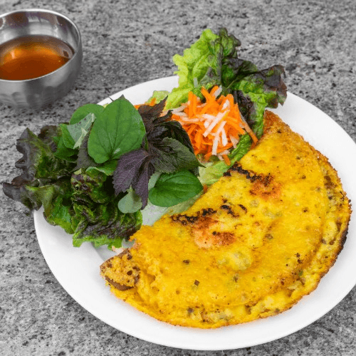 Vietnamese turmeric rice noodle with chicken and shrimp quail egg
