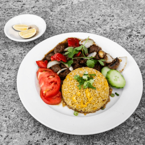 Tender Beef served with Cup Fried Rice
